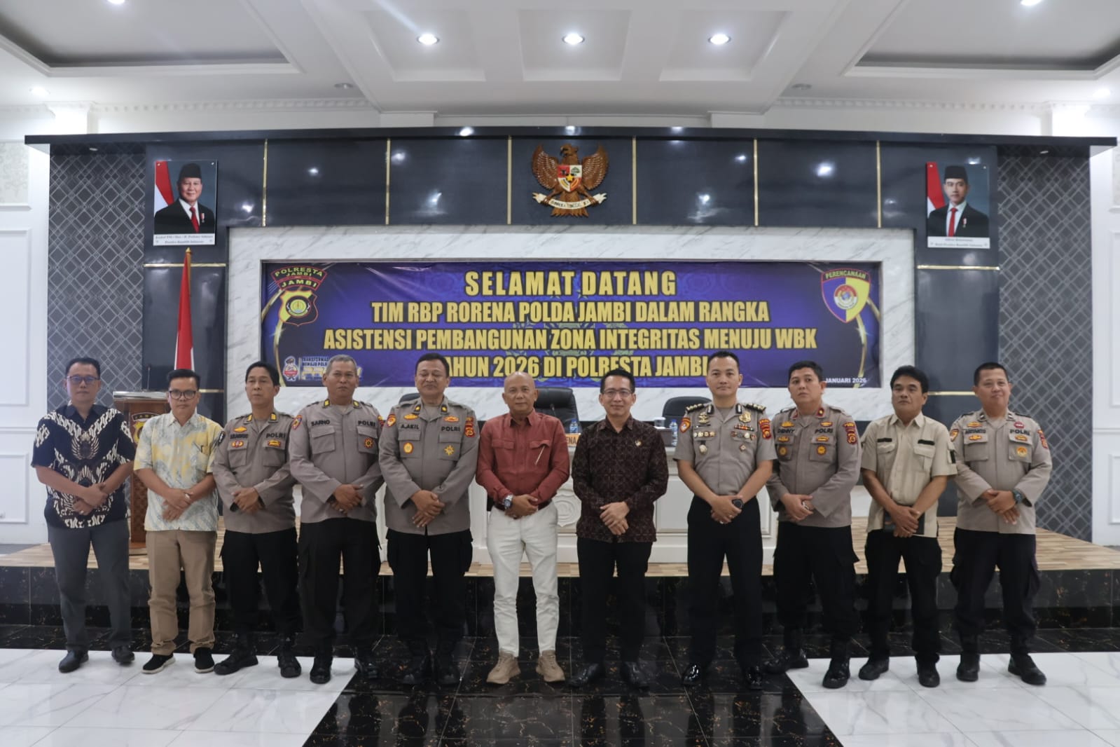 Metronewsjambi.com|Jambi Tim Reformasi Birokrasi Polri (RBP) Polda Jambi yang dipimpin oleh Karo Rena Polda Jambi Kombes Pol Herwansyah Saidi S.I.K.M.Si. melaksanakan Asistensi Pembangunan Zona Integritas (ZI) menuju Wilayah Bebas dari Korupsi (WBK) Tahun 2026 di Aula Lokamanginti Polresta Jambi, Jumat (23/01/26).