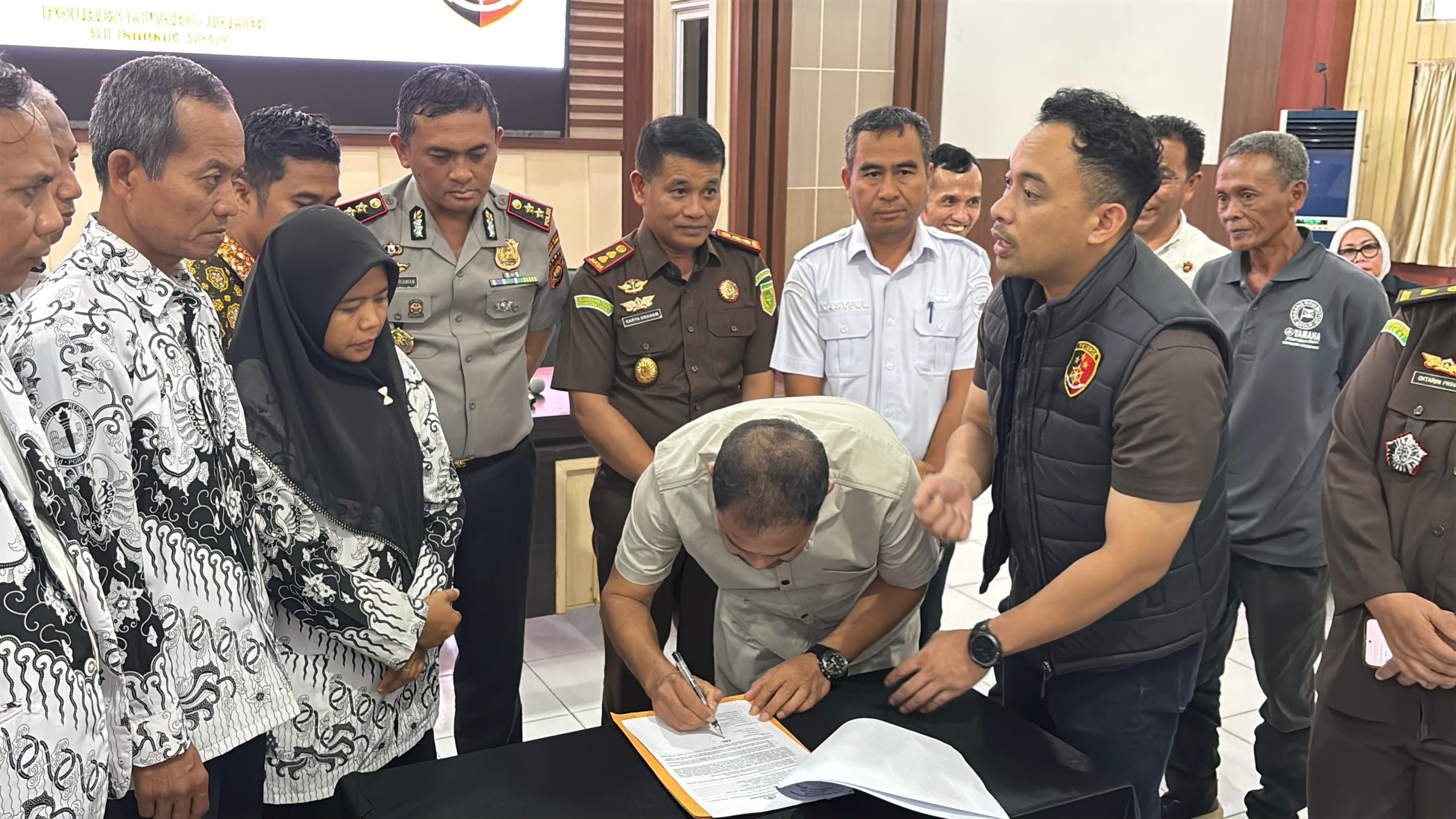 Kegiatan mediasi tersebut dipimpin langsung oleh Kapolres Muaro Jambi AKBP Heri Supriawan, didampingi Kepala Kejaksaan Negeri Muaro Jambi Karya Braham Hutagoal, serta dihadiri unsur Polda Jambi, Kejaksaan Tinggi Jambi, Pemerintah Daerah, Dinas Pendidikan, PGRI, DPRD Kabupaten Muaro Jambi, penasihat hukum, pihak terlapor, dan orang tua korban.