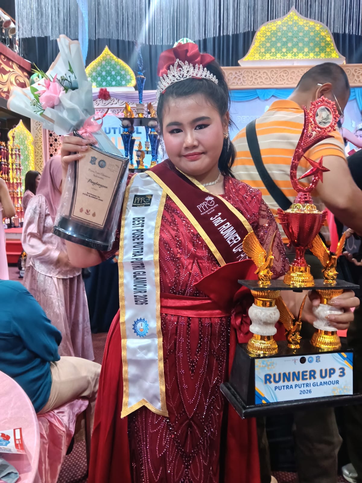 Dalam kompetisi ketat tersebut,Zahra berhasil meraih dua penghargaan sekaligus, yakni sebagai Runner Up 3 dan kategori spesial Best Pose Putri Glamour 2026, Penampilan memukau Zahra dengan busana malamnya berhasil mencuri perhatian dewan juri dan penonton yang hadir.